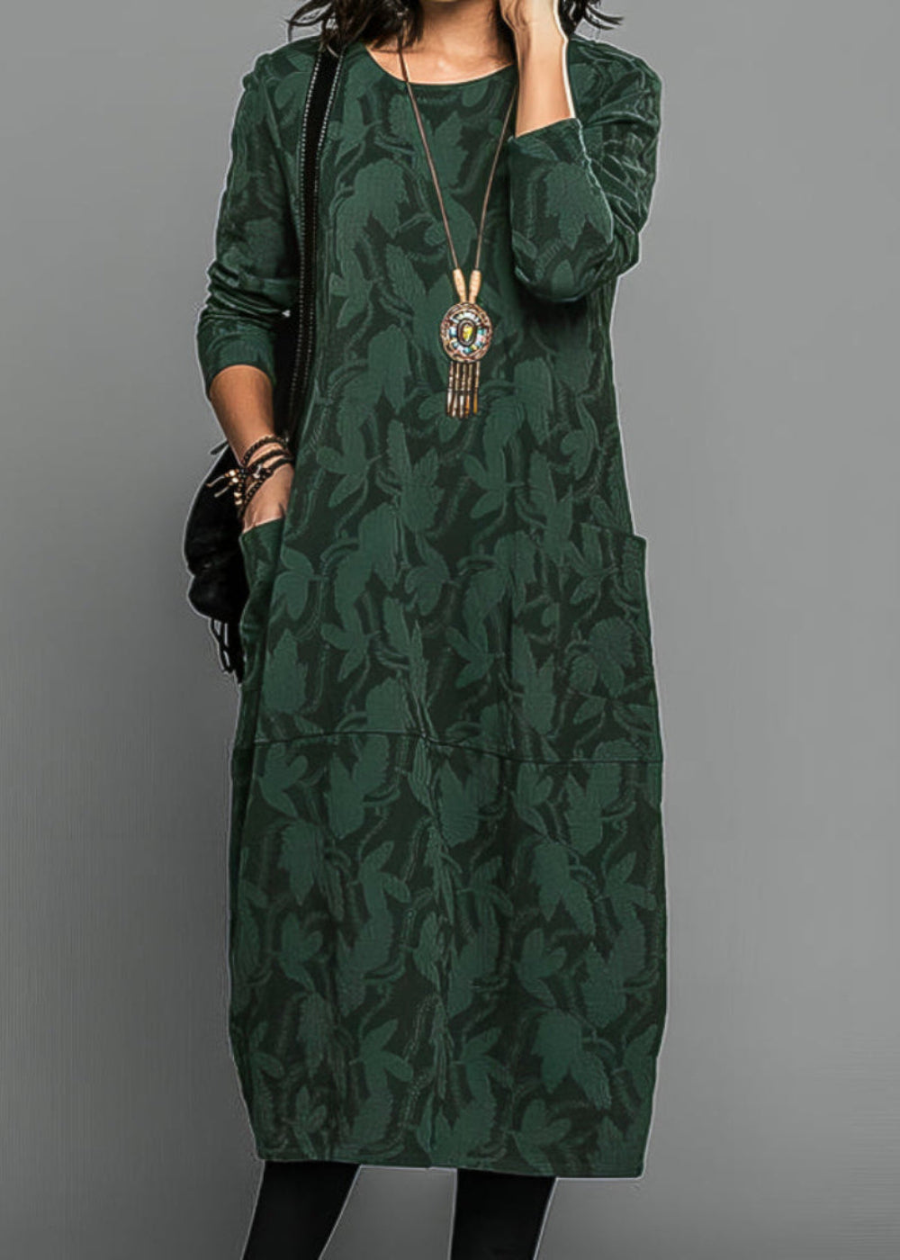 Wejdź w sezonową elegancję z Elegancką Zimową Sukienką Betty, wyrafinowaną sylwetką zaprojektowaną tak, aby ogrzać Cię, zachowując jednocześnie elegancki wygląd. Dzięki korzystnemu krojowi i subtelnym detalom jest to idealna propozycja na chłodniejsze dni i wyjątkowe okazje.