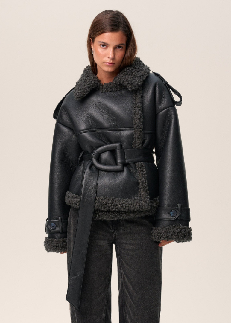 Elvira | Płaszcz z Barankowej Skóry z Paskiem