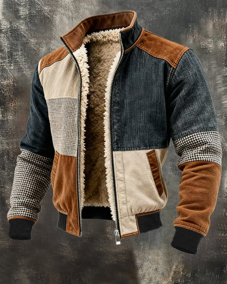 Fabian | Ciepła Retro Kurtka Patchworkowa Na Zamek